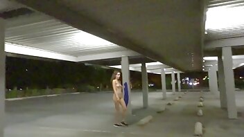 Nicole goes around to many very public locations and flashes, strips, masturbates, and cums.