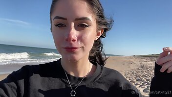 Pretty brunette on the beach with cum on her face.