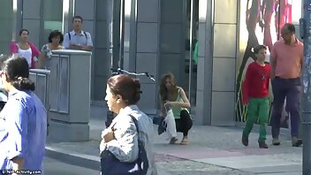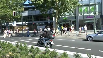 A girl strips and walks naked in public streets.